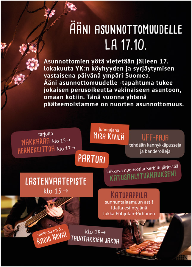 I designed a flyer and a poster for an event that was about raising awareness of people without homes. I wanted the visuals to have warm welcoming theme that fits for autumn.