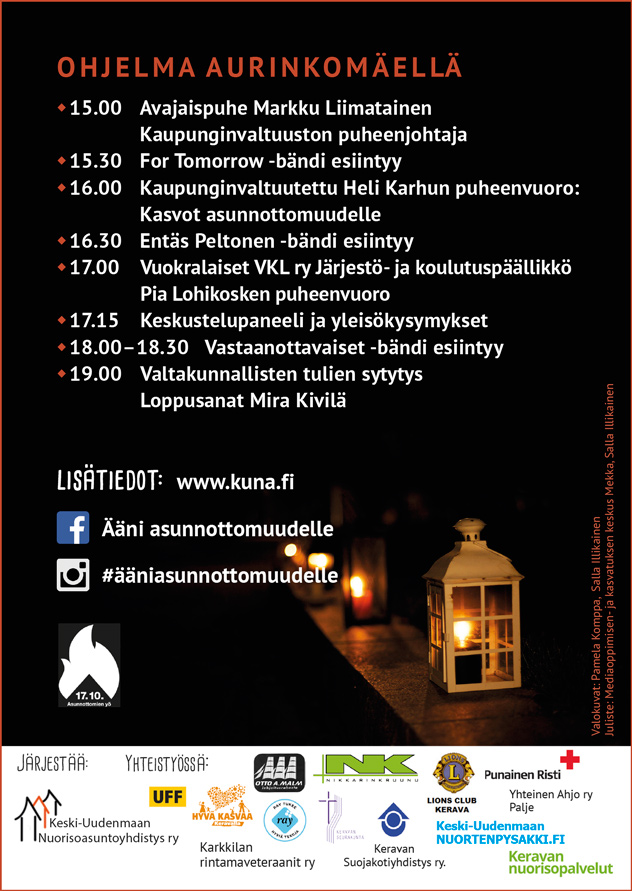 The green banner for Keravan nuorisopalvelut is designed by another artist.