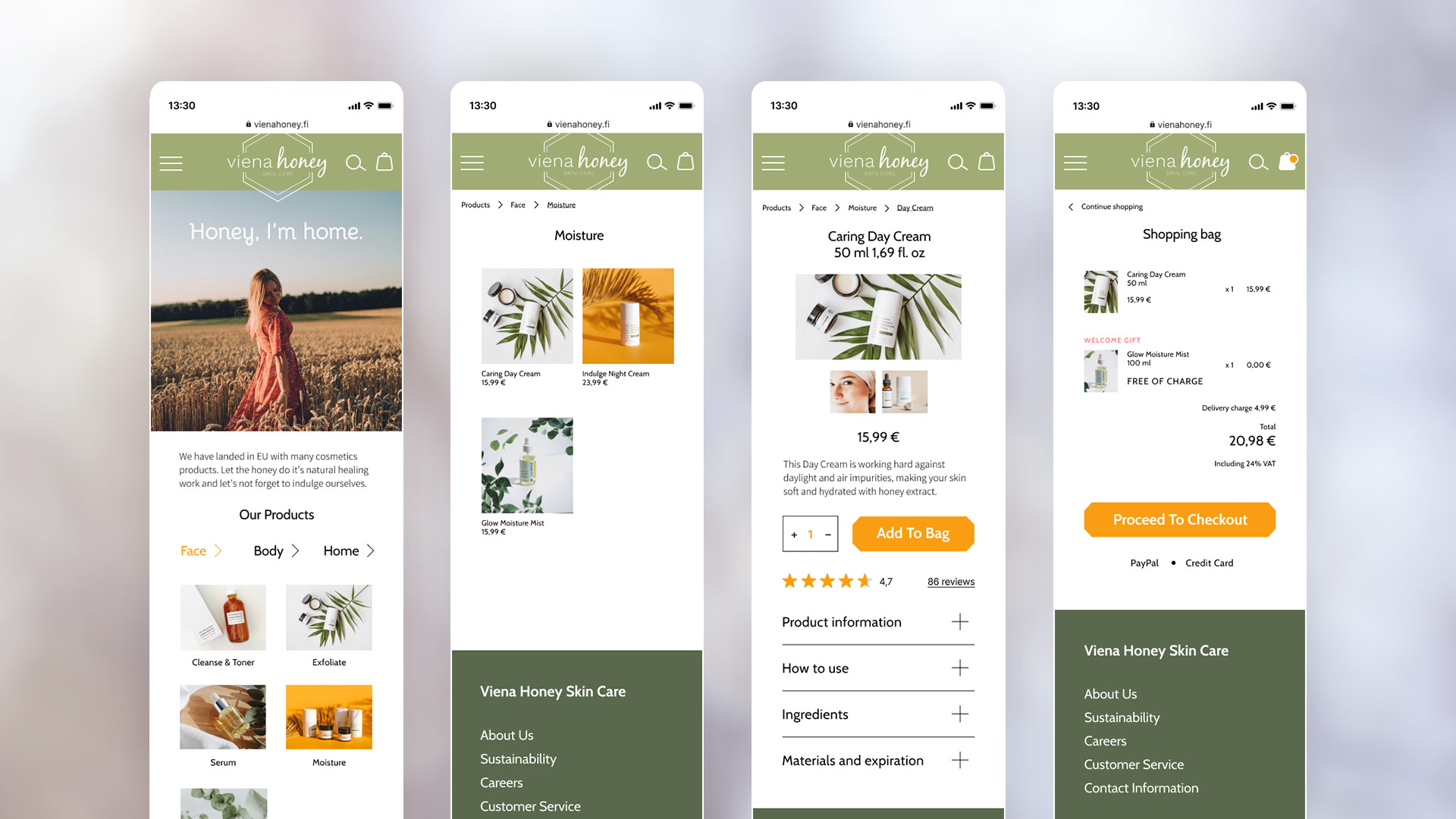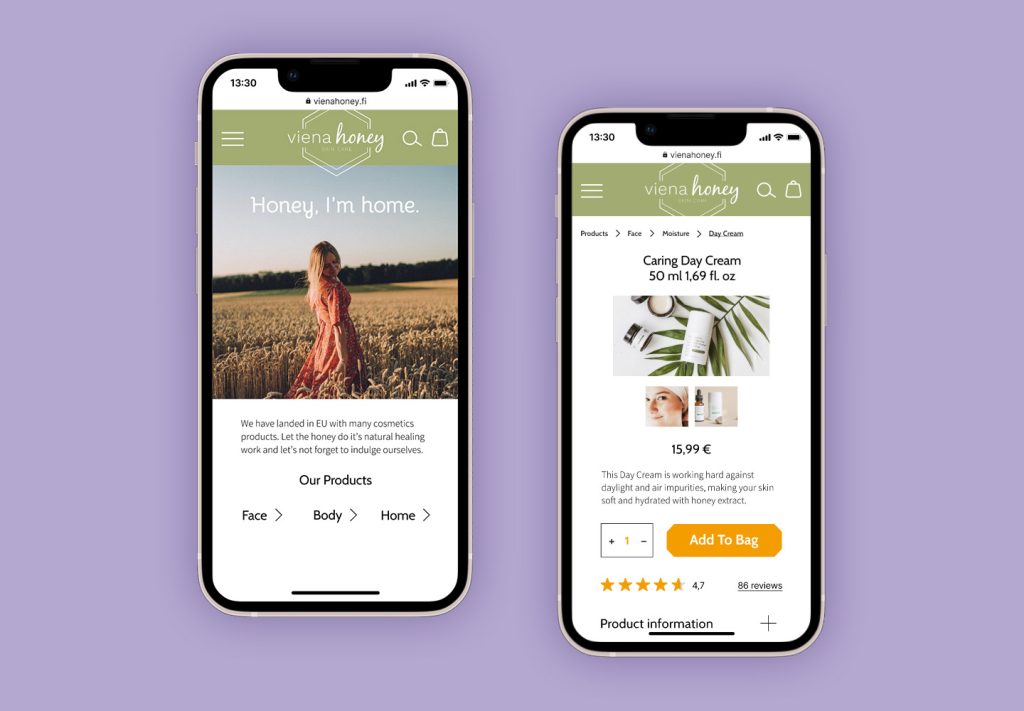 After the succesful business in the US, Viena Honey is intending to launch an ecommerce site for their customers in Europe. They want to maintain the brand’s recognisability, and to have the site designed as easy to use as possible.